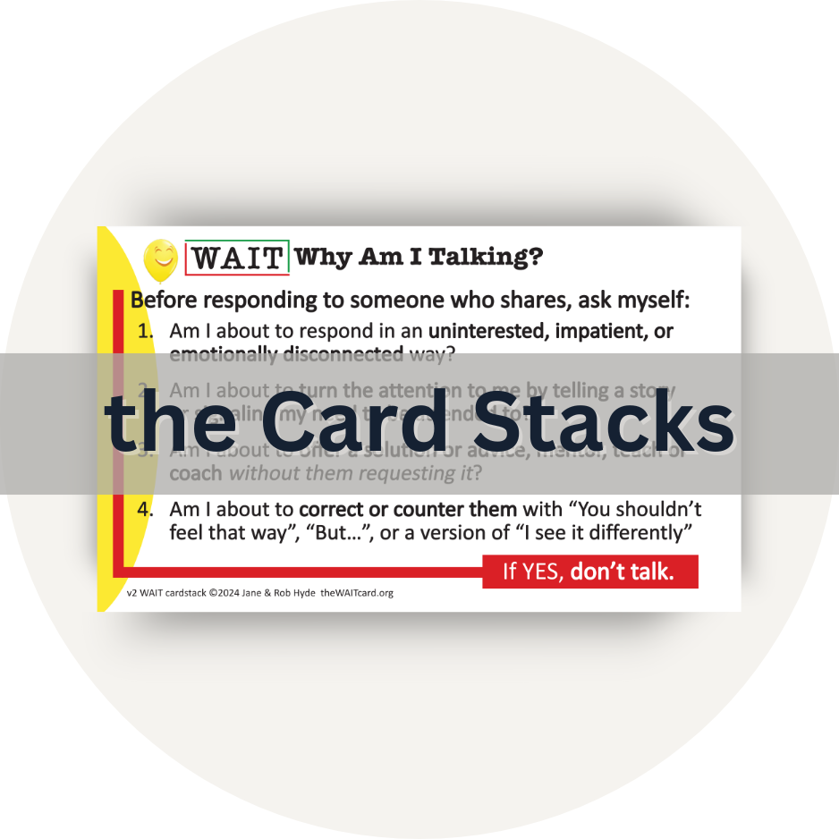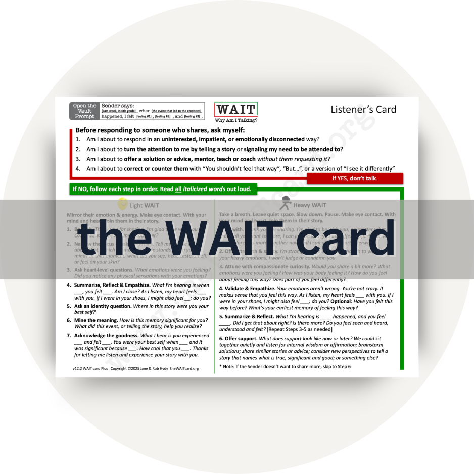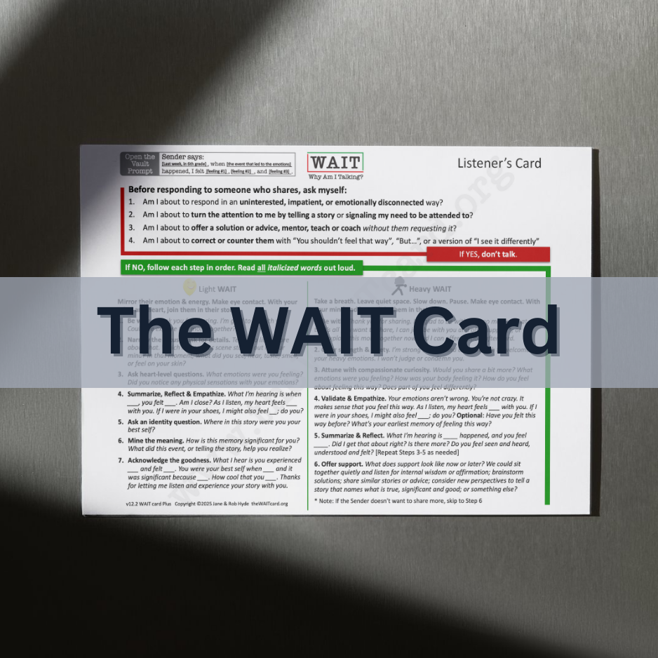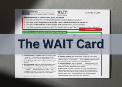 Do you love the WAIT card or other WAIT tools and the impact they've made in your life? Help us spread the word so others can discover the power of these tools. Whether it’s a social media post, a conversation, or a testimonial, your voice makes a difference. Click below to share and join us in making a greater impact together!