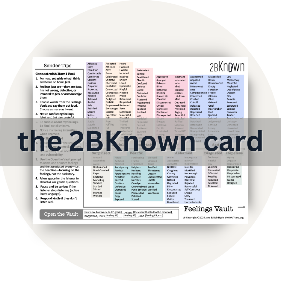 Click the WAIT card and the 2BKnown card circles above and download both. Read the instructions on the back of the WAIT card. Check out our other resources for more detailed information.